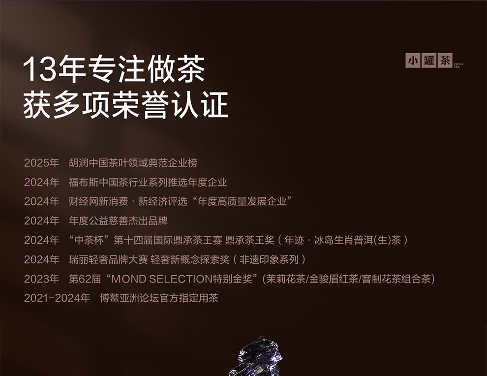 輕奢商務(wù)茶葉pin牌-小罐茶 小罐茶全國(guó)線(xiàn)下2000+實(shí)體門(mén)店 小罐茶 x 敢保真(產(chǎn)地保真、年份保真、安全保真) 檔次商務(wù)送禮就送小罐茶 年跡·班章生態(tài)茶 普洱茶(熟茶)緊壓茶)2020燜泡裝 班章熟茶 甜醇糯滑 凈 含 量:198克(3g*66餅) 形態(tài):緊壓茶(小餅) 木盒尺寸:26.4*10.7*5.7cm 蘊(yùn)藏普洱老熟茶的年份美 三枚封貼 專(zhuān)業(yè)認(rèn)證 - 科學(xué)做茶 讓好茶有標(biāo)準(zhǔn) 精致木盒包裝,送禮體面彰顯尊貴。 宜禮宜飲 適用多種社交場(chǎng)景傳遞美好情誼 一盒滿(mǎn)足禮贈(zèng)貴賓、商務(wù)會(huì)面、重要答謝等需求。 出品方:北京小罐茶業(yè)有限公司